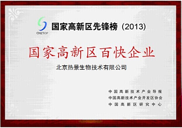 由中國高新技術(shù)產(chǎn)業(yè)導(dǎo)報(bào)社、中國高新技術(shù)產(chǎn)業(yè)開發(fā)區(qū)協(xié)會(huì)和中國高新區(qū)研究中心共同主辦“國家高新區(qū)先鋒榜(2013)”推選結(jié)果公布。北京熱景生物技術(shù)有限公司年度經(jīng)營規(guī)模和快速增長方面取得的突出成績,榮列“國家高新區(qū)先鋒榜(2013)百快企業(yè)”榜單。