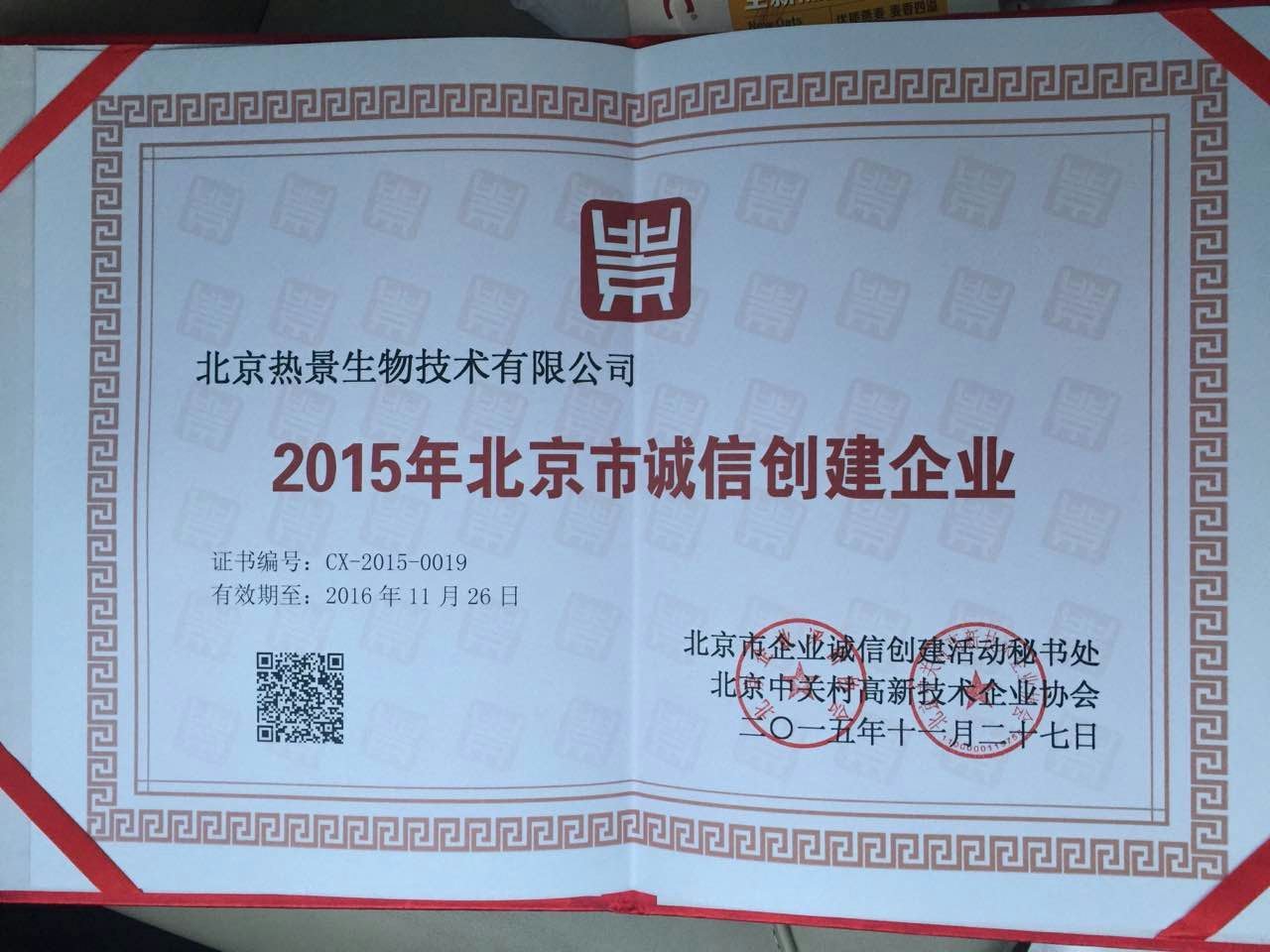 【榮譽(yù)】熱景生物榮獲2015年北京市誠信創(chuàng)建企業(yè)獎(jiǎng)