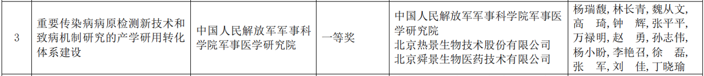 近日,北京市人民政府發(fā)布《北京市人民政府關(guān)于2023年度北京市科學(xué)技術(shù)獎勵的決定》,中國人民解放軍軍事科學(xué)院軍事醫(yī)學(xué)研究院、北京熱景生物技術(shù)股份有限公司、北京舜景生物醫(yī)藥技術(shù)有限公司聯(lián)合申報的“重要傳染病病原檢測新技術(shù)和致病機制研究的產(chǎn)學(xué)研用轉(zhuǎn)化體系建設(shè)”項目,榮獲“2023年北京市科學(xué)技術(shù)進步獎一等獎”,這是繼公司獲得國家技術(shù)發(fā)明二等獎、中華醫(yī)學(xué)科技獎二等獎、民營科技發(fā)展貢獻獎科技創(chuàng)新一等獎、上海市科學(xué)技術(shù)二等獎之后的又一重磅獎項,充分體現(xiàn)了熱景生物在高水平科技自立自強、打造科技創(chuàng)新核心競爭力道路上的不懈追求和綜合實力。
