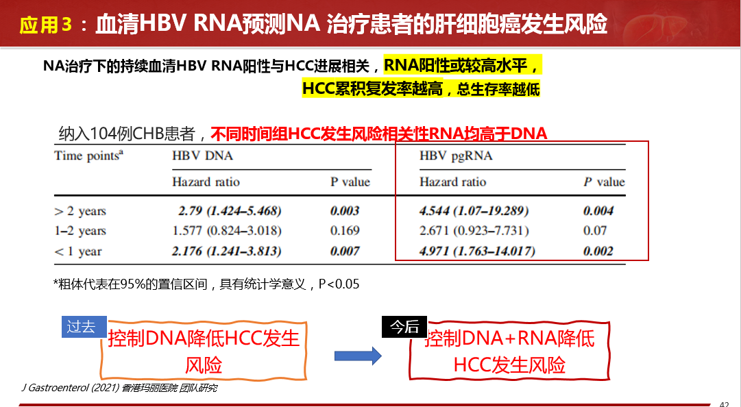 ★今后,從過(guò)去單一的控制HBV DNA到控制HBV DNA+ HBV RNA降低HCC發(fā)生風(fēng)險(xiǎn)將成為一種應(yīng)用趨勢(shì)。