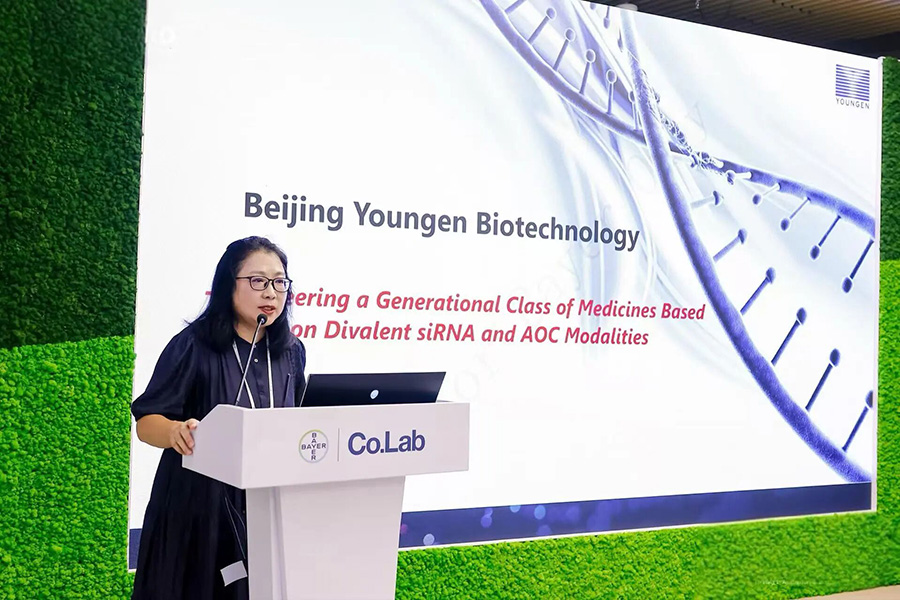 2025年9月8日,北京堯景基因生物技術(shù)有限公司(下稱“堯景基因”)應(yīng)邀參加拜耳Co.Lab全球生命科學(xué)共創(chuàng)平臺(tái)在華開(kāi)幕一周年“1起·為創(chuàng)想喝彩”主題活動(dòng),共同探討中國(guó)創(chuàng)新藥的未來(lái)發(fā)展?jié)摿Γ苿?dòng)更多突破性創(chuàng)新成為應(yīng)對(duì)全球健康挑戰(zhàn)的中國(guó)解決方案。堯景基因首席科學(xué)顧問(wèn)鐘輝教授分享全球小核酸行業(yè)的發(fā)展與競(jìng)爭(zhēng)格局,展示了公司自主研發(fā)的心臟靶向遞送技術(shù)平臺(tái)及管線研發(fā)成果。