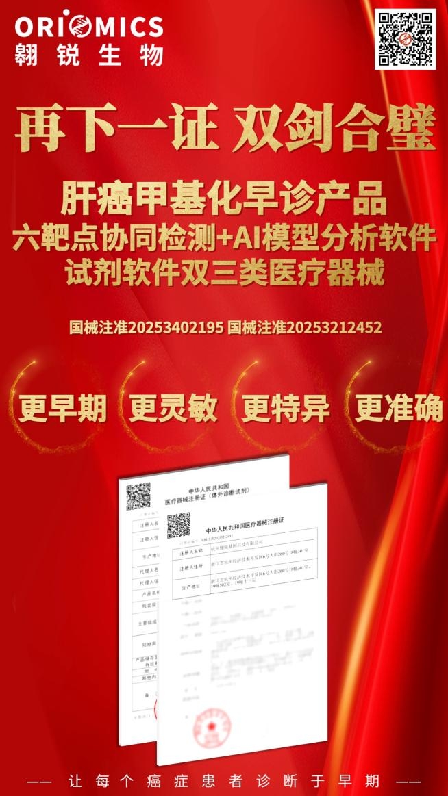 12月1日,熱景生物重要參股公司翱銳生物研發(fā)的“TSPYL5、RASSF1A、DAB2IP、OTX1、PTPN18、HIST1H3G基因甲基化AI模型分析軟件”成功獲得中國國家藥品監(jiān)督管理局(NMPA)三類醫(yī)療器械注冊證。這是繼2025年10月“利為平?——肝癌甲基化六靶點協(xié)同檢測試劑盒獲批后,翱銳生物在30天內(nèi)拿下的第二張“三類證”。自此,翱銳生物已形成“檢測試劑+AI分析軟件”雙Ⅲ類證的完整產(chǎn)品組合,標(biāo)志著公司在肝癌早診早篩領(lǐng)域的產(chǎn)品布局進(jìn)入“精準(zhǔn)診斷”與“智能分析”深度融合的全新階段。