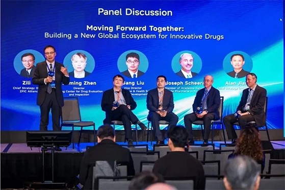 圓桌主題:Moving Forward Together: Building a New Global Ecosystem for Innovative Drugs,嘉賓從左至右依次為: