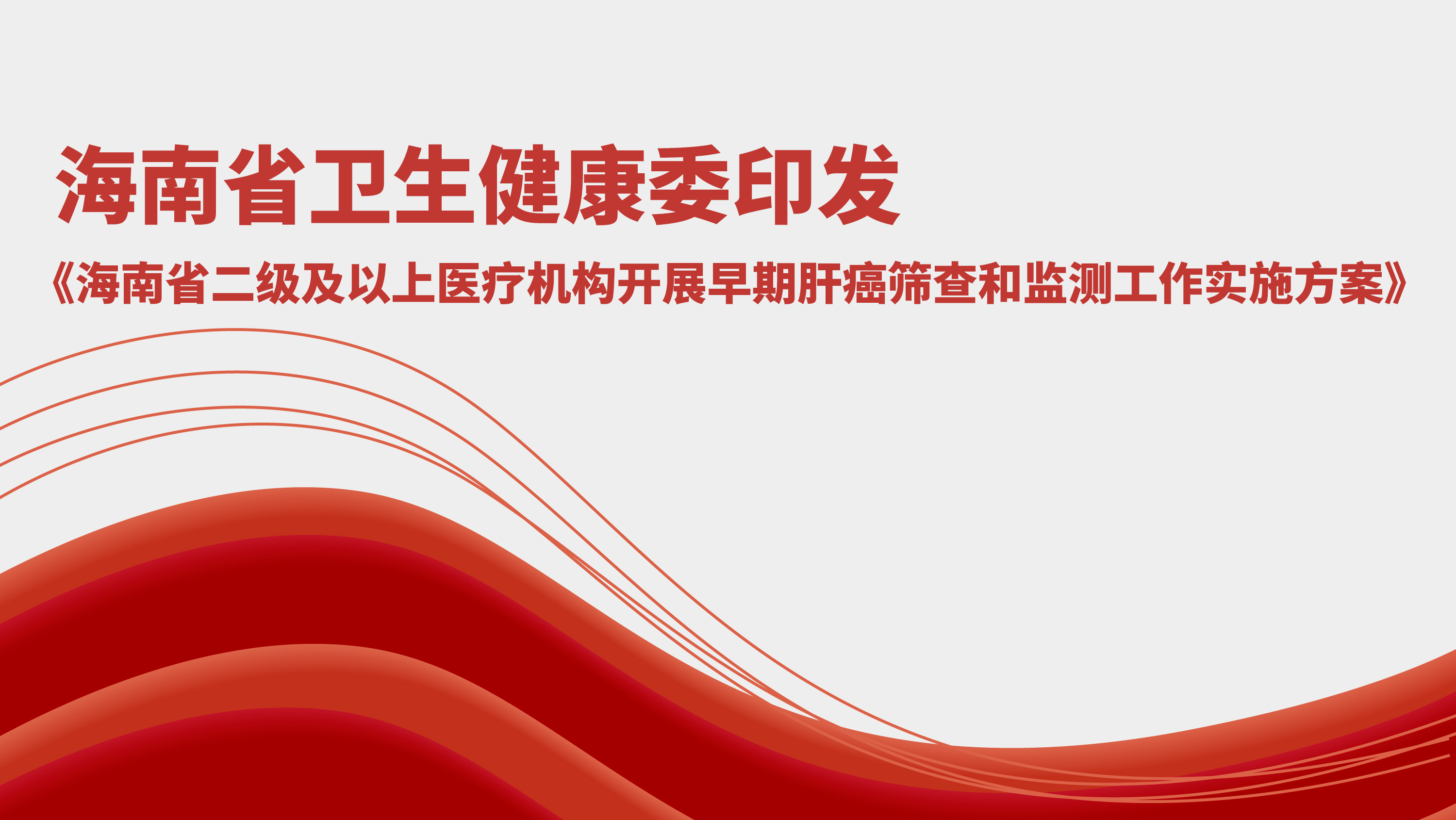 近日,海南省衛(wèi)生健康委印發(fā)《海南省二級(jí)及以上醫(yī)療機(jī)構(gòu)開(kāi)展早期肝癌篩查和監(jiān)測(cè)工作實(shí)施方案》(以下簡(jiǎn)稱(chēng)《方案》),計(jì)劃在全省二級(jí)及以上醫(yī)療機(jī)構(gòu)建立早期肝癌篩查和監(jiān)測(cè)工作機(jī)制,進(jìn)一步做好海南省“2+3”健康...