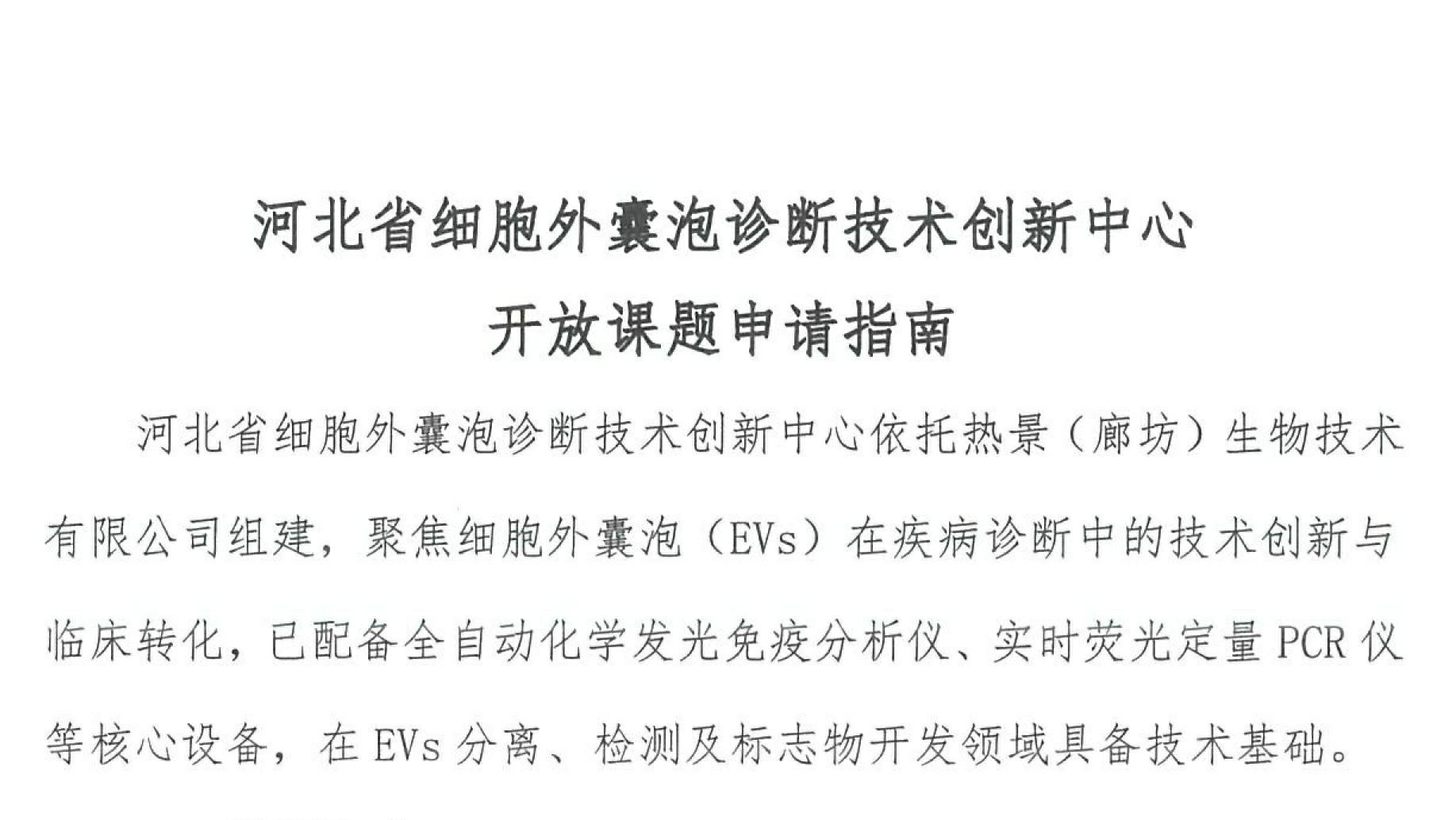 河北省細胞外囊泡診斷技術(shù)創(chuàng)新中心開放課題申請指南