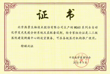重磅!MQ60系列全自動化學(xué)發(fā)光免疫分析系統(tǒng)被中國醫(yī)學(xué)裝備協(xié)會推薦為胸...