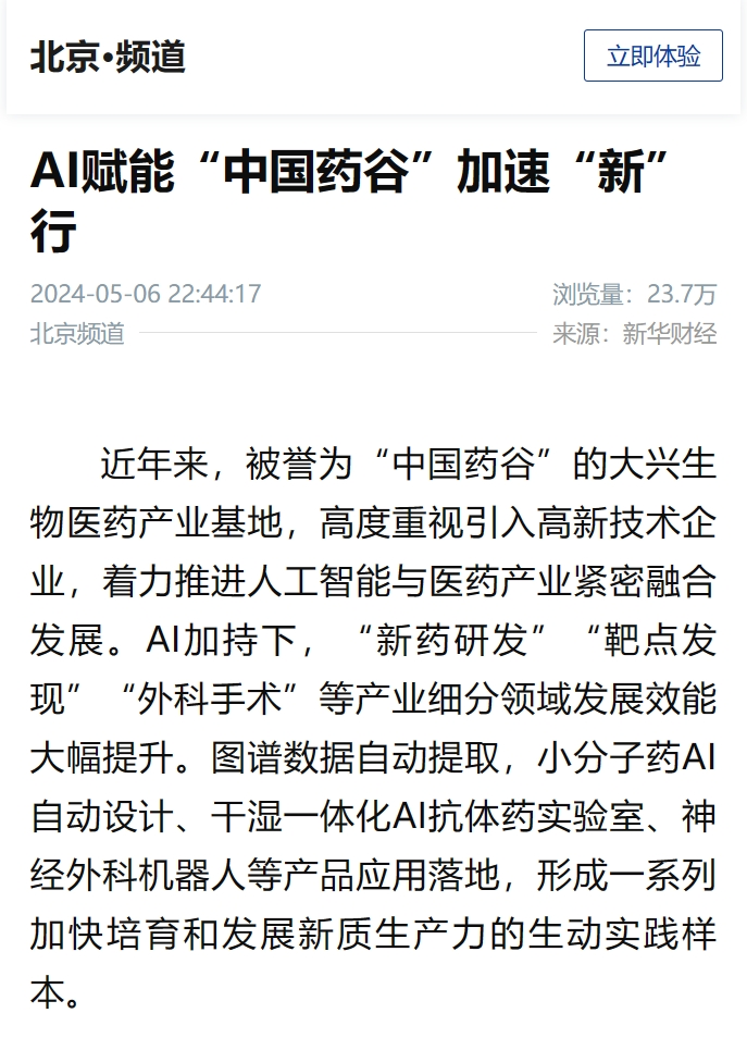 新華社:AI賦能“中國藥谷”加速“新”行