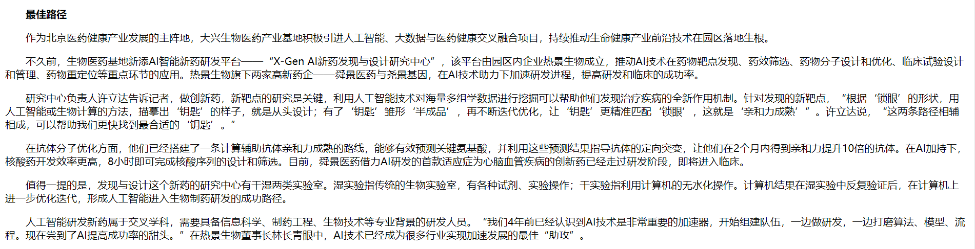 經(jīng)濟日報:“中國藥谷”依托人工智能創(chuàng)新研發(fā)